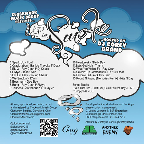 “Up In Smoke” is the 1st official mixtape release from the production duo Clockwork Muzik Group. Clockwork has produced & recorded tracks for artists such as Krayzie Bone, Paul Wall, Young Buck, Killer Mike, Chip Tha Ripper, Ray Jr., Ray Cash, Freddie Gibbs, and many more! With over 45,000+ views already since dropping last Thursday night, “Up In Smoke” is poised to be the soundtrack to the summer for 2012!! Click in the cover above to visit the new site www.clockworkmuzik.com and download your free copy of “Up In Smoke” today!