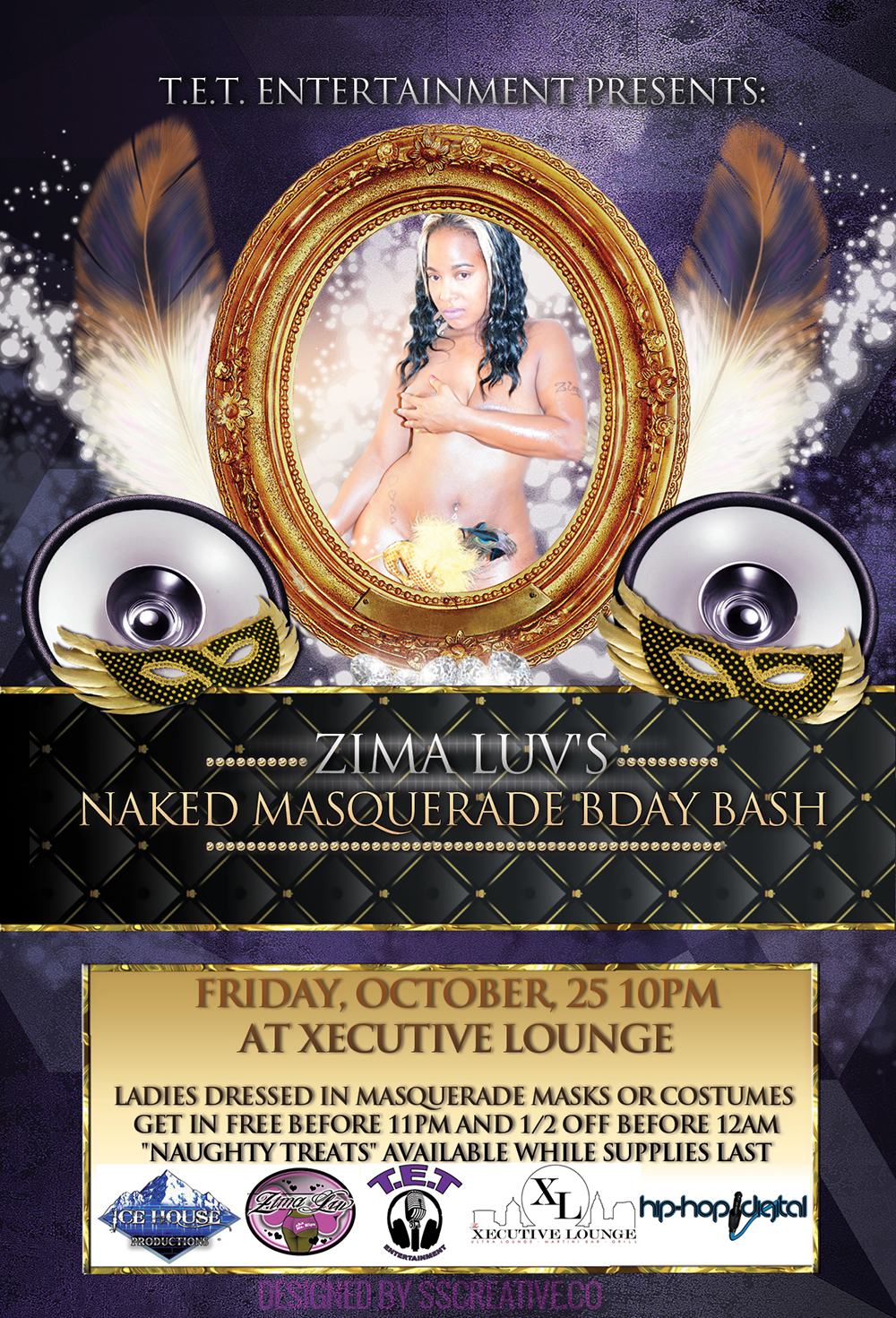 T.E.T. Entertainment Presents: Friday October 25th it goes down!!! ZIMA LUV #NakedMasqueradeBdayBash featuring The Ryan Michell serving “Naughty Treats” sponsored by #IcehouseProductions | Diva Treats provided by: #CupcakeDiva | Exclusive media coverage by SPITT MAGAZINE | Masquerade girls will be available for pics so arrive EARLY | Flyer by: S & S Creative Co. Photocred: Roy Lamar | Gotta birthday coming up…wanna celebrate with Zima Luv for FREE? Contact Ms. Cream of the Crop for details!!!